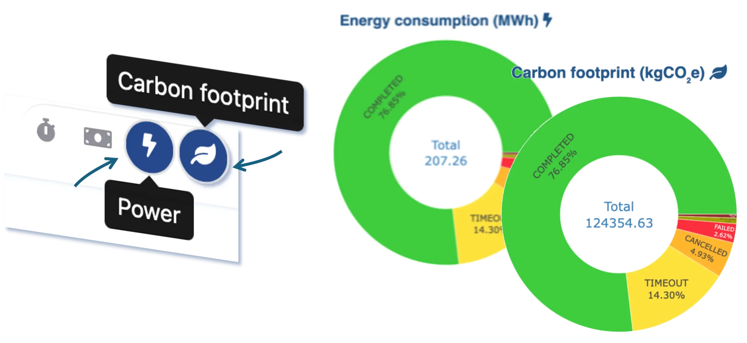 OKA provides precise views of energy consumption and carbon footprint at any granularity – from the cluster level down to individual jobs and projects. Coupled with OKA’s Data Enhancers, this gives organizations a solid, auditable foundation for their sustainability reporting and carbon reduction trajectory.