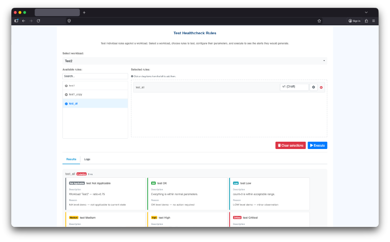 OKA’s HealthCheck engine lets you define what “healthy” means for your specific environment, then monitors your clusters continuously and automatically. When a rule is breached, OKA alerts you – with context and recommendations, so you can act fast.